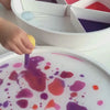 - Lädt zum Experimentieren mit Wasser und Farben ein